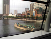 晴海トリトンは隅田川のそばにありますが、川を渡る橋の上から屋形船を撮ってみました。川岸がきれいに整備されすぎて、ちょっと雰囲気合わない感じ。ほんとにこのあたり、開発されてしまったなぁ。